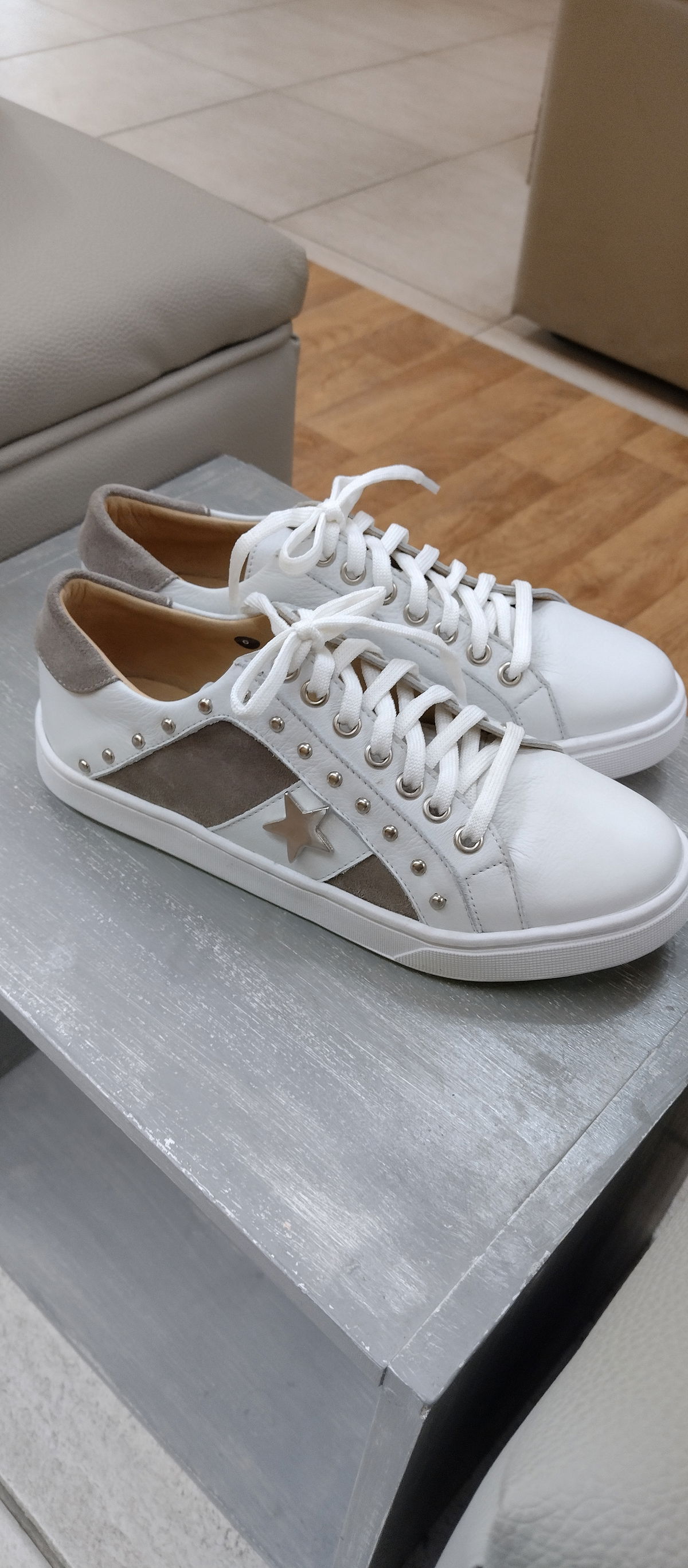 Zapa Star Mix. Urbanas a full ,combinan absolutamente con todo, su diseño hace que te veas más fashion. Muy cómodas. Interior: cuero vacuno. Exterior cuero vacuno. Base Tr cocida. Detalle de tachas y estrella en acero.